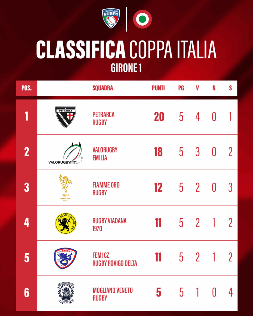 Coppa Italia: Valorugby e Vicenza guidano i 2 gironi, Petrarca e Colorno vincono in trasferta, Viadana e Parabiago difendono le mura di casa 16 Novembre 2025